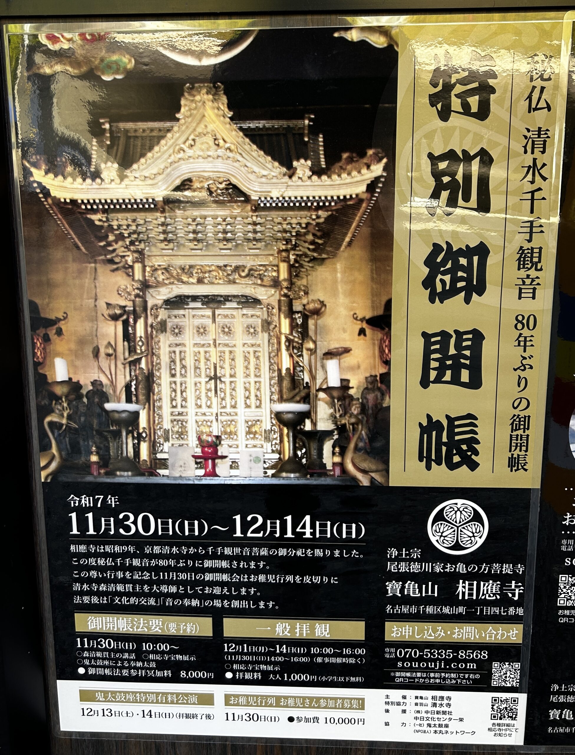【名古屋】相応寺「清水千手観音菩薩立像」約80年ぶりのご開帳